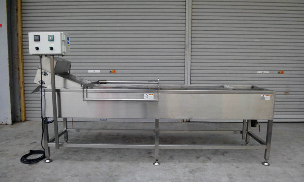 | 備 考 | 槽高さ:750 コンベア幅:300 ネット下有効長さ:約1600 ネット搬送速度:0.15m/分~1.1m/分 可変 商品通過高さ:30 商品長さ:140(下のネットコンベアの横桟のピッチ) 電源 AC100V/60W 蒸気接続口径:20A |