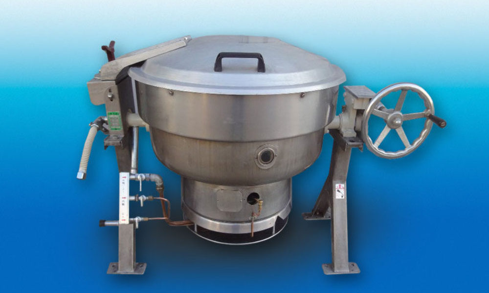 煮物、炒め物、揚げ物など、幅広い調理に対応する回転釜。 容量:80L |