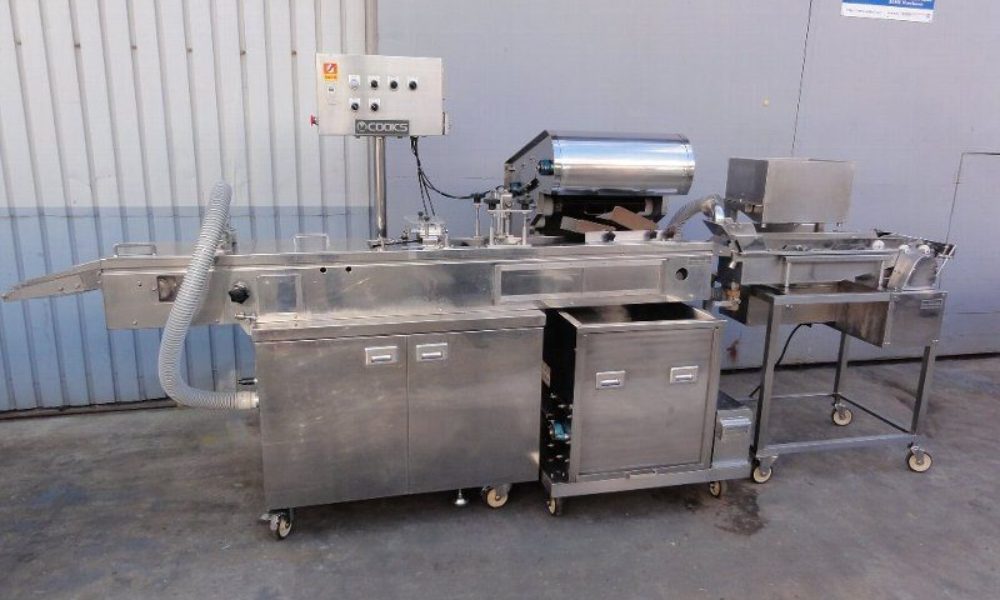 パーフェクト・オートブレッダー PB-3600-FSA型 機械構成 <3機能:クロスユニット式> コンベアー速度:0~13m/min 処理能力:3600~4000個/h(成型機投入60g標準品の場合) 使用パン粉:生パン粉(水分20~35%)、ドライパン粉 兼用可能 |